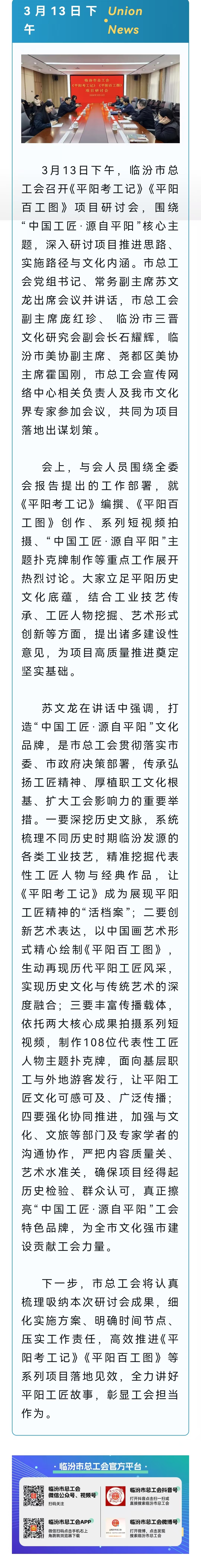 临汾市总工会召开《平阳考工记》《平阳百工图》项目研讨会